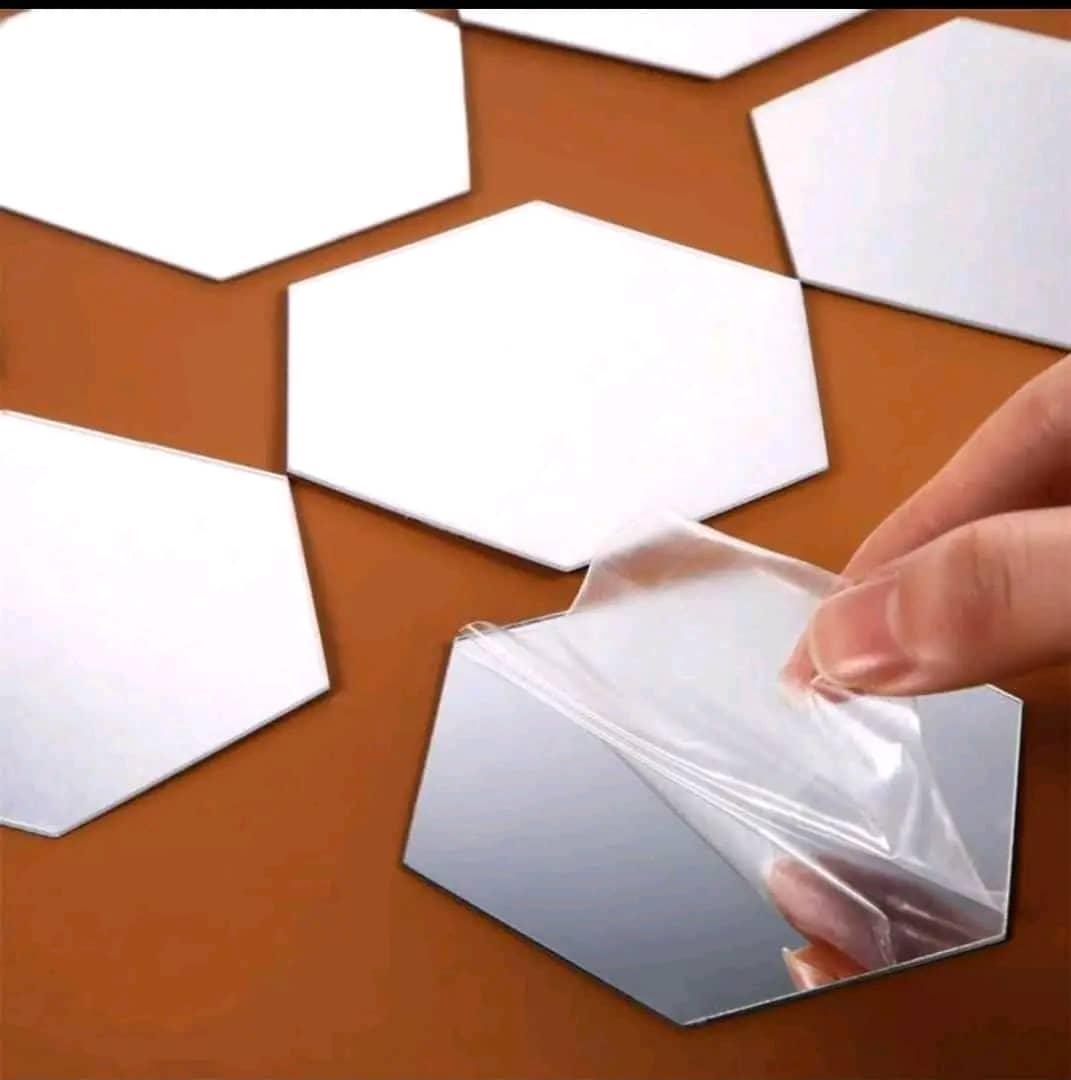 عاوز تجدد ديكور البيت و اوضتك بطرق بسيطة من غير ما تكلفك كثير استيكر مرايا علي شكل خلية النحل لعمل اشكال مختلفة يضيف لمسات جمالية مختلفة لزق دبل فيس قوي لا يحتاج لحفر او مسامير المقاس : 18*21 سم