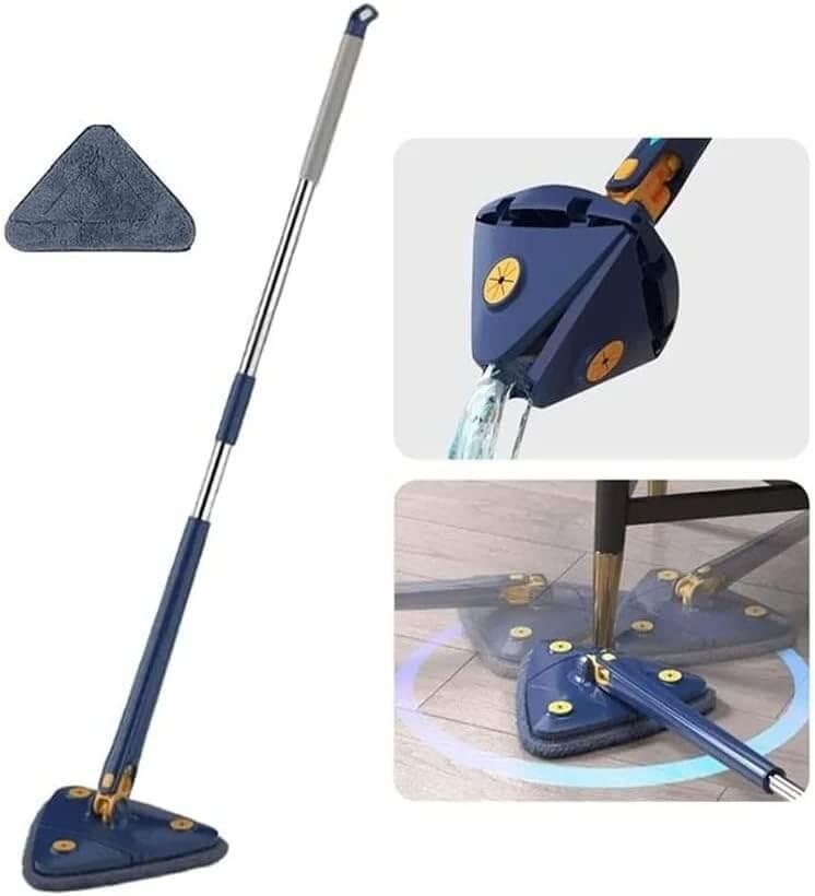 ممسحة تنظيف مثلثة قابلة للدوران ذاتية العصر تلف 360درجة ممسحة دوارة لتنظيف الزجاج والأرضيات وأثاث الحائط والسقف