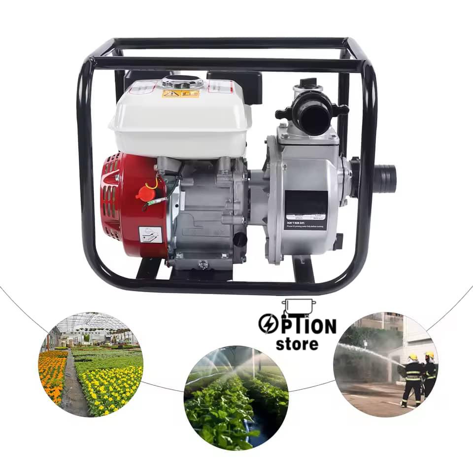 ماكينة قوية بتشتغل بالبنزين قطر 2 بوصة – شغال في سحب الموية من الترع، الخزانات، وحتى الطواري هيكل حديد تقيل يحميها من الخبطات