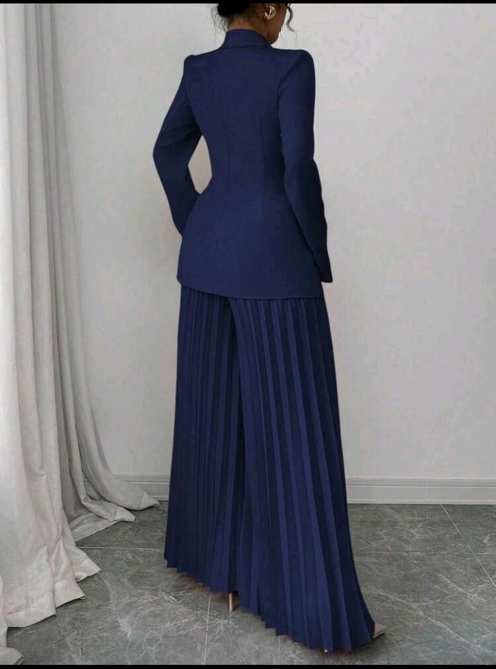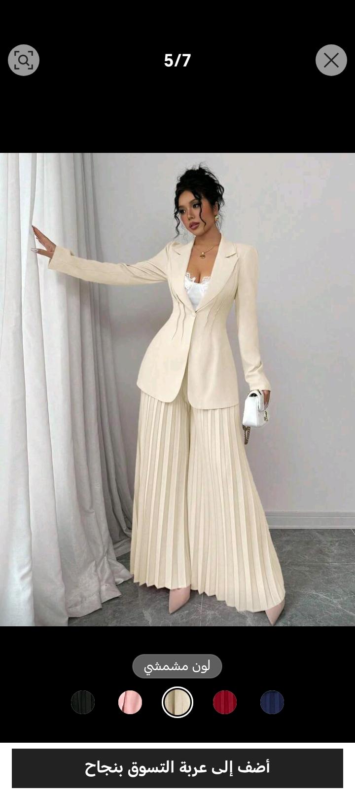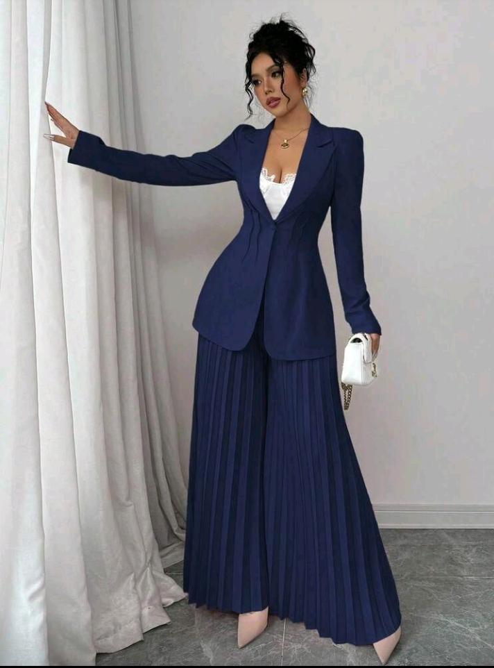 بدلة رسمية مكونة من جاكيت مشدودة الخصر وبنطال واسع الساق مطوي