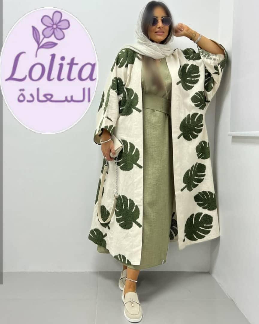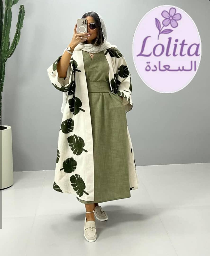 فستان بيزك + حزام + جكت طويل