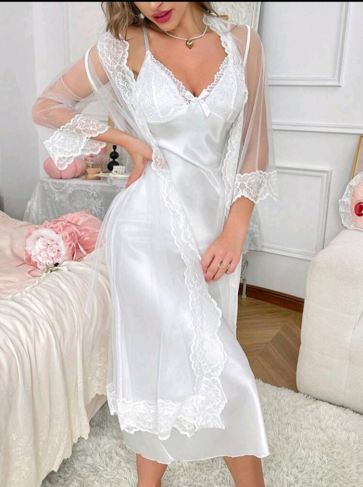 طقم ملابس نوم أنيق من الساتان والدانتيل للنساء