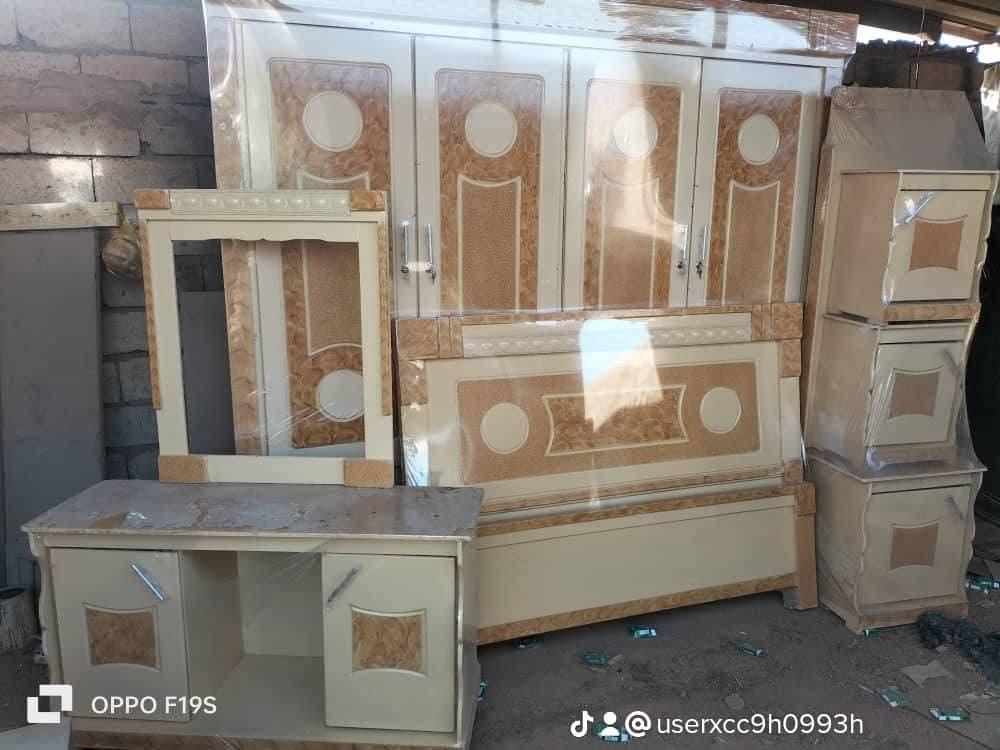 غرفه نوم كامله 4 ضلف خشب ماليزي تتكون من دولاب وسرير دبل شماعه كمودينه تسريحه