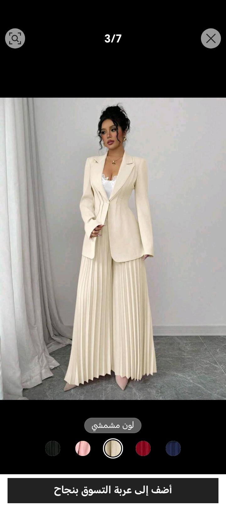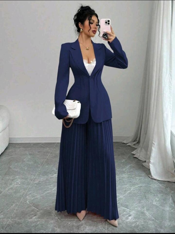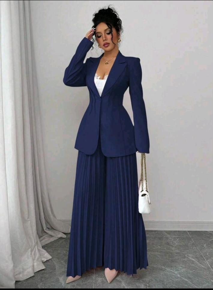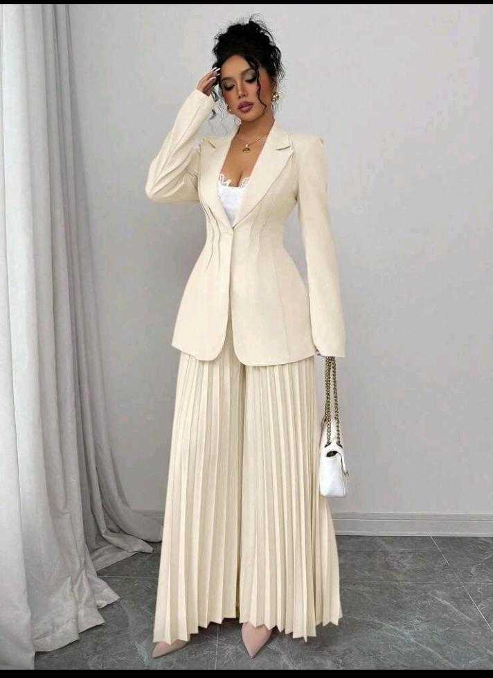 بدلة رسمية مكونة من جاكيت مشدودة الخصر وبنطال واسع الساق مطوي