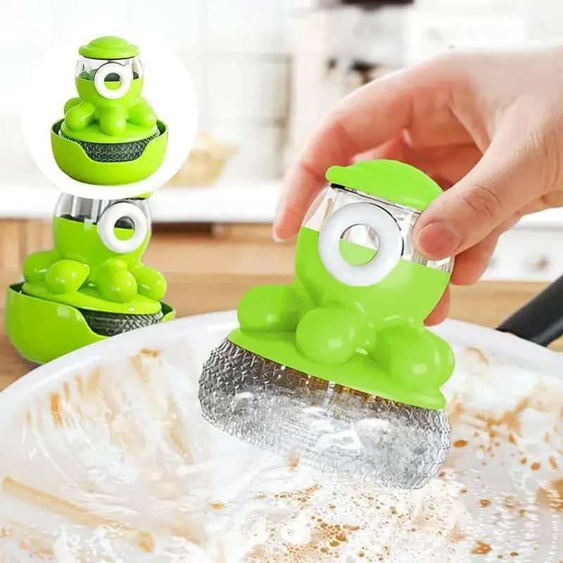 ليفة سلك بمقعد مع خزان وماسك وضاغط سيليكون من الأعلى لراحة اليدين أثناء غسيل العدة