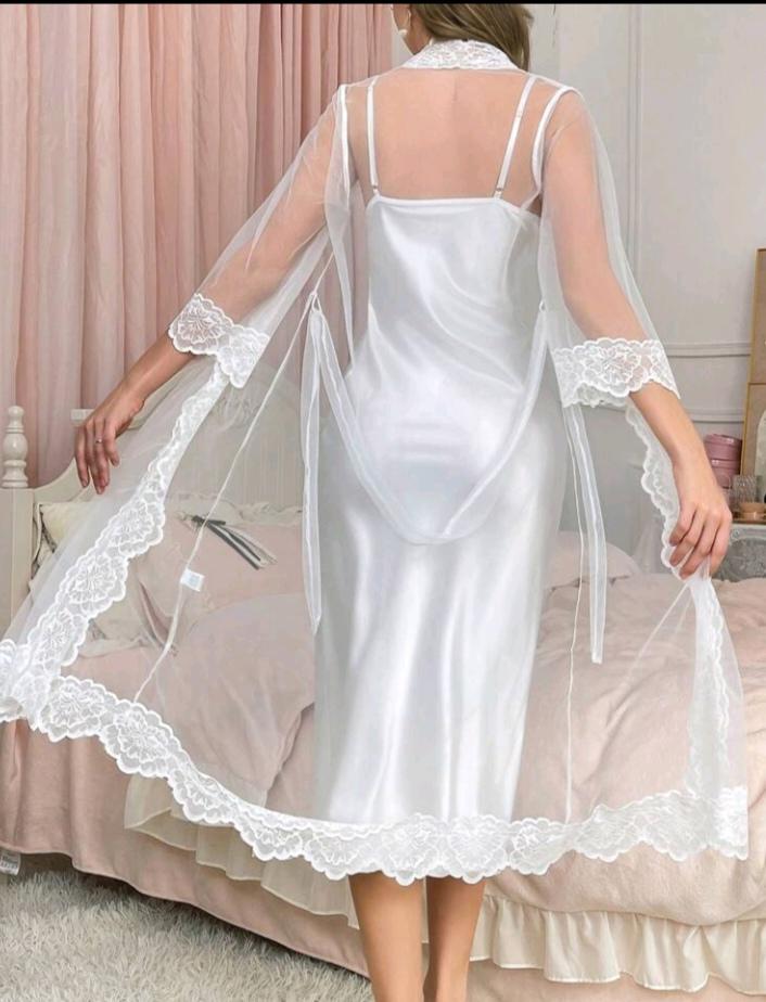 طقم ملابس نوم أنيق من الساتان والدانتيل للنساء