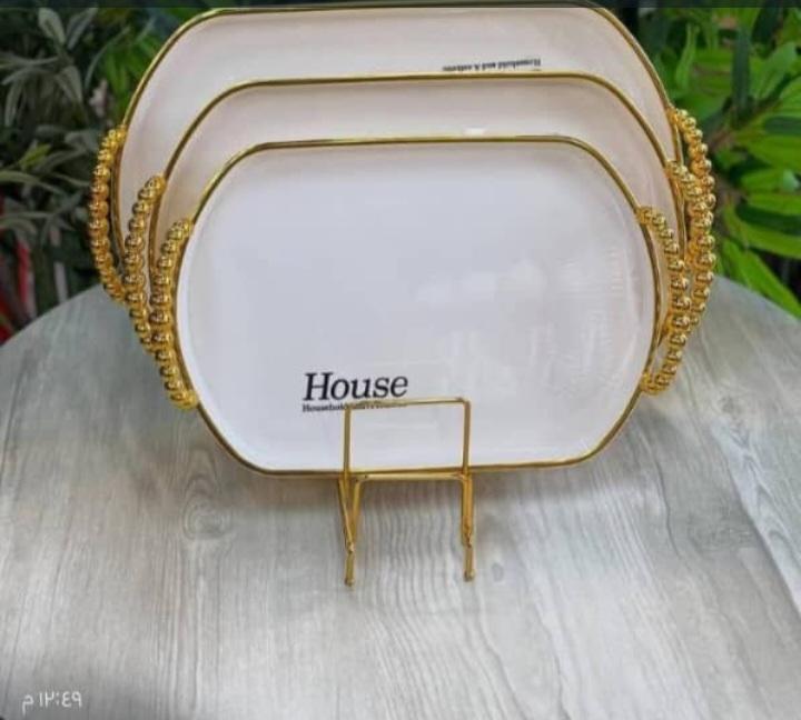 أحلى وأشيك طقم صواني🌸 Houseطقم صواني هاوس جولد صوانى تقديم اكريلك فينش فوق الخيال الصور ظلماها جداااا😉الطقم 3 قطع متوفره بعده الوان